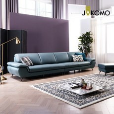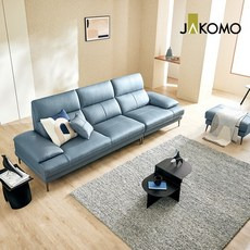 자코모 베니 4인 카우치형 기능성 슈렁큰 천연면피 소가죽 소파, 미스티블루/ 우형