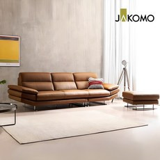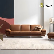 자코모 패시브 4인 천연면피 소가죽 소파+스툴, 라떼