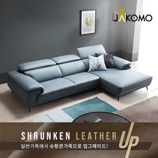 자코모 베니 4인 카우치형 기능성 슈렁큰 천연면피 소가죽 소파, 미스티블루/좌형