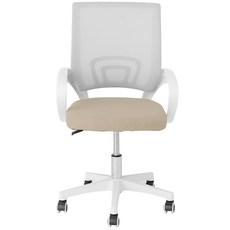 로고스토리 학생 컴퓨터 사무용 사무실의자 AIR-C 무헤드형, 화이트 + 샌드베이지