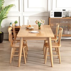 아우스 RT 고무나무 원목식탁 식탁단품 식탁세트 4인용 6인용 나무식탁 원목식탁세트, 내추럴 의자 4개 + 식탁 100cm