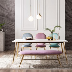 채우리 모딜리아니 M93 세라믹 골드 6인 식탁세트 의자 3P + 벤치 방문설치, 모던 마블