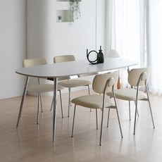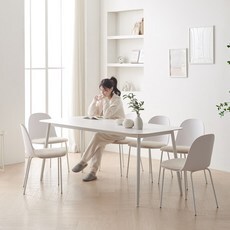 폴인퍼니 베르티나 타원형 식탁의자세트 6인용 1800 방문설치, 식탁(무광 올화이트),의자(베이지)