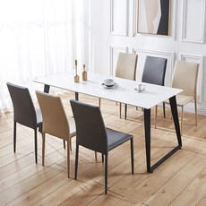 웰퍼니쳐 시에라 포세린 세라믹 6인 식탁세트 방문설치, 화이트+블랙(식탁),베이지+그레이(의자)