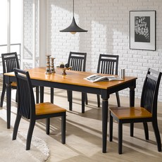 로드퍼니처 리벤스 1600 원목 식탁 6인용 + 의자 6p 방문설치, 다크네이비